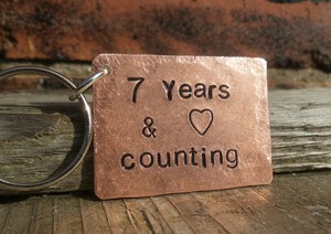 When seeking out lovely 7 year wedding anniversary gifts for her, you could think about incorporating one of the traditional themes into your present. Amethyst is made of quartz (which is a strong, heavy stone), making it a gift with lasting power. Personalized 7 year anniversary keychain/ hand stamped penny/ 2013 couple gift/ wedding / 7 th anniversary/ gift for her gift for him jewelrylovemoments. It is known that during the time of the holy roman empire, a man would crown his wife with a silver wreath on the 25th anniversary, and a gold wreath on the 50th anniversary, however, there was little else documented in terms of themes for gift giving on.