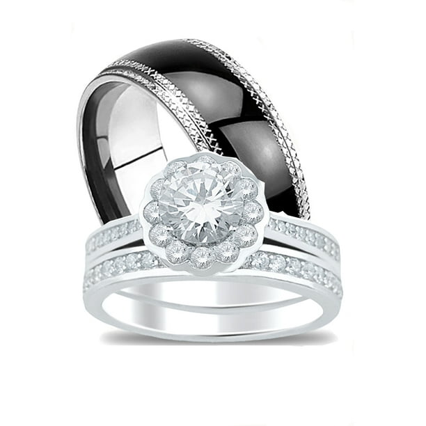 Although walmart cakes may not be fancy or exciting, they're a customer judy shares that her daughter's wedding cake from walmart was gorgeous and delicious. From geometric settings to floral etchings, these unusual wedding bands are perfect for the unconventional bride. White gold finish engagement ring/ multi wedding bands set his and hers l 9 m12. Walmart has your favorite brands to make your moment even more magical—shop brilliance fine jewelry, gemspirations, miabella, keepsake, forever bride.