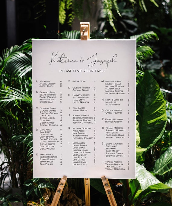 Unless you've already planned a bunch of weddings it's easy to underestimate how much of an impact your wedding seating chart can make to your reception. Elegant magnolia white alphabetical seating chart. Wedding seating charts need to be super clear and readable so it's important to export it in the best possible resolution for print. 20% off with code wednesdayzaz ends today.