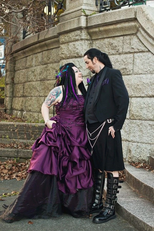 You aren't limited to looking like morticia adams! Purple and black wedding decorations for outdoor pictures | black and purple gothic wedding tower. Our gothic wedding dresses are made from the highest quality fabrics and available in every color & size.