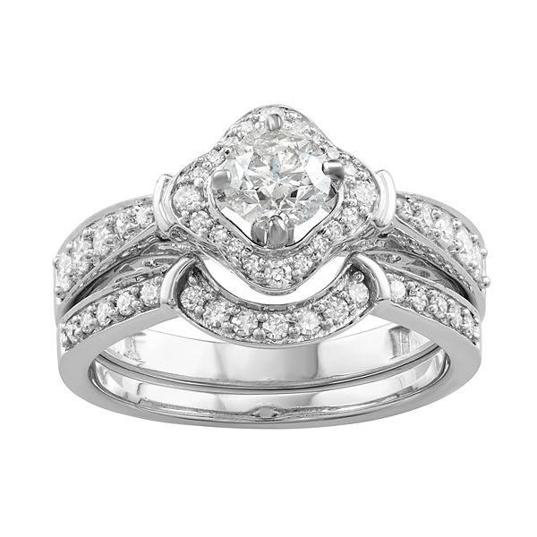 Always Yours Two Tone 14k White Gold 1 2 Carat T W Diamond Halo Engagement Ring Set from media.kohlsimg.com