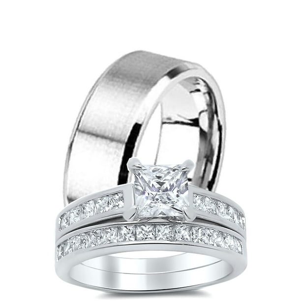 I've never seen walmart jewelry inaccurately labeled, so you should be able to determine if it's solid metal or plated from its description. Dazzling wedding ring sets that will last a lifetime. Once you're presented with an engagement ring, it's time to start thinking about wedding bands. His & hers promise rings couple ring set personalized silver | etsy.