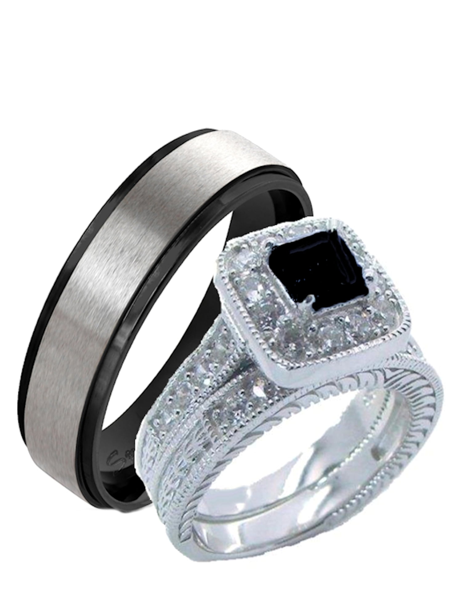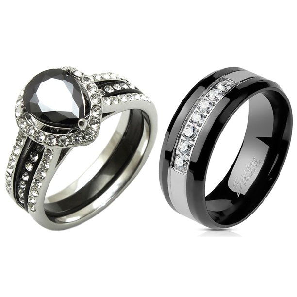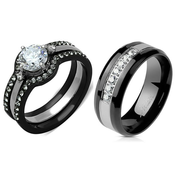 View Walmart Wedding Ring Sets His And Hers Pictures. The bridal wedding set for her is created in 925 sterling silver.the mans matching wedding band is created in stainless steel. This matching his and her wedding set is the perfect intersection of femininity and strength.